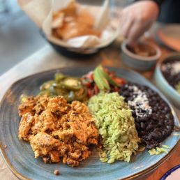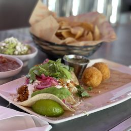 The vibes! Went for lunch to celebrate early Father's Day and this place does not disappoint! The food and drinks were not only delicious but the presentation was beautiful! Our server Amanda was friendly and efficient despite seeming like she was the only server and was also taking tables on the patio. We had a quiet booth towards the back of the restaurant but never felt "forgotten". The staff was helpful in delivering our food and drinks and pre bussing our table before meals arrived. The prickly pear and cucumber margarita were so good! Dad had a mango slushy with a nice kick (which we honestly didn't expect from a frozen margarita). The blood orange margarita was also a favorite! We had the wings, cornbread and cheese sticks as appetizers. The wings were soo flavorful and a good amount for the price. The cornbread might be the best we've ever had! The cheese sticks had pablano peppers stuffed inside tortilla which was a nice twist on a classic favorite. The kids meal we got was steak quesadilla, the meat was tender and accompanied by rice and beans. We also ordered shrimp tacos, enchilladas, birillia rellano were all delicious (could use a tad more batter on the rellano) the portions were huge and exceeded expectations for Mexican cuisine, what an incredible spot! Will definitely be back! Ps- they also validate parking